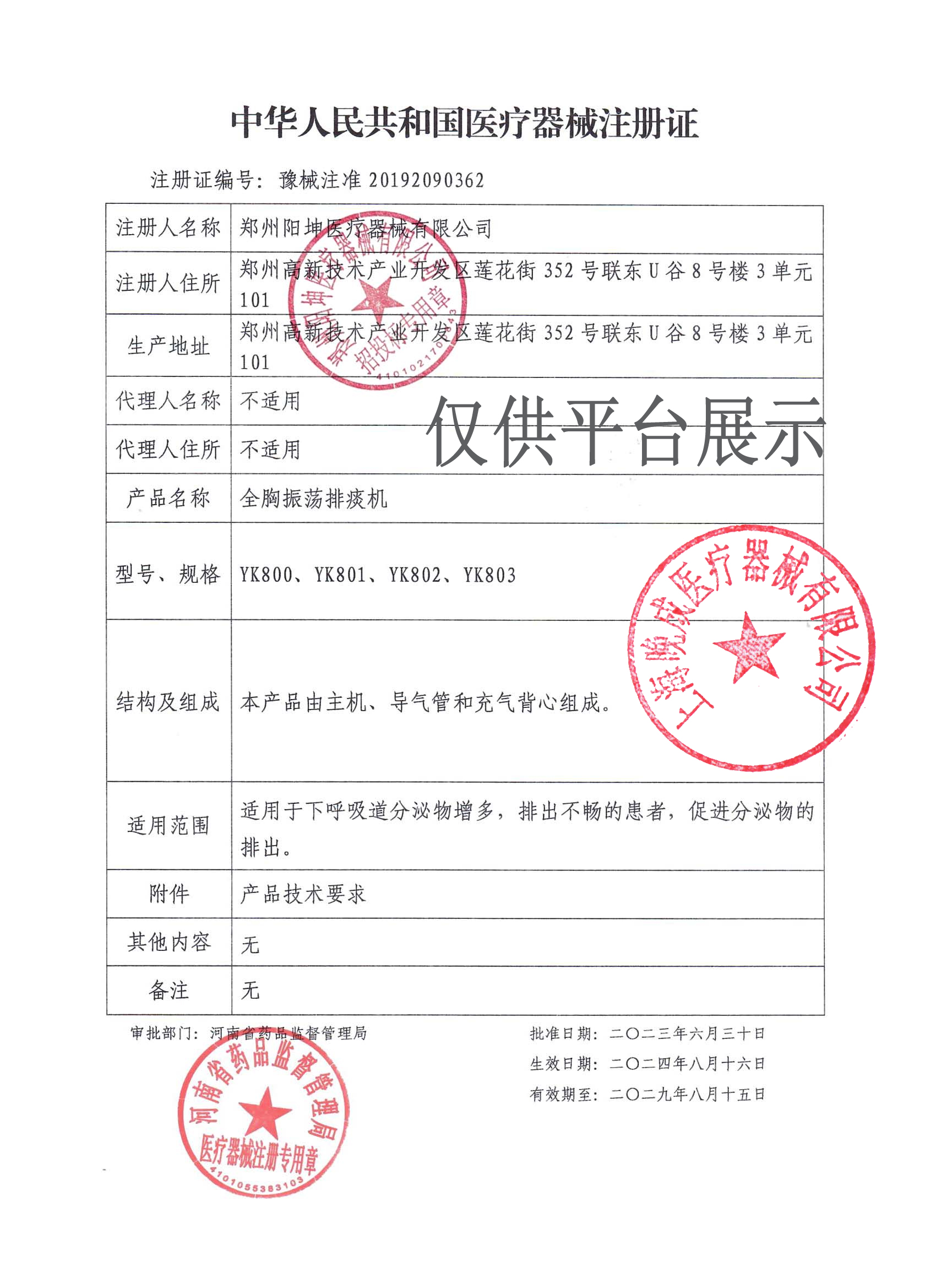 產(chǎn)品名稱 : 陽(yáng)坤全胸振蕩排痰機(jī)YK802 成人兒童背心式排痰